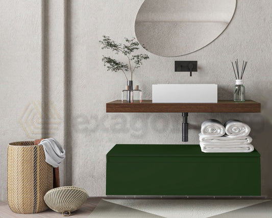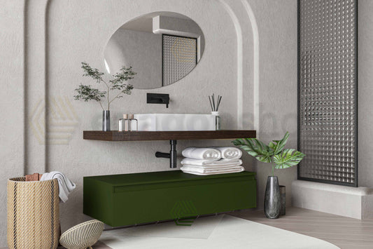 Mobile bagno caffe Verde opaco 120x50 Oasy un cassetto con top e lavabo rettangolare da appoggio