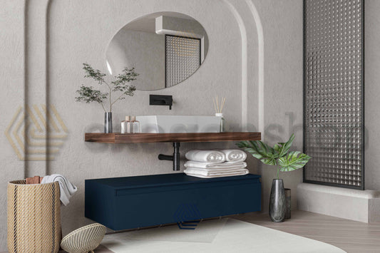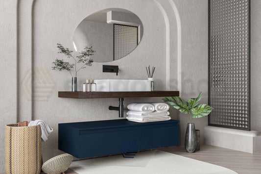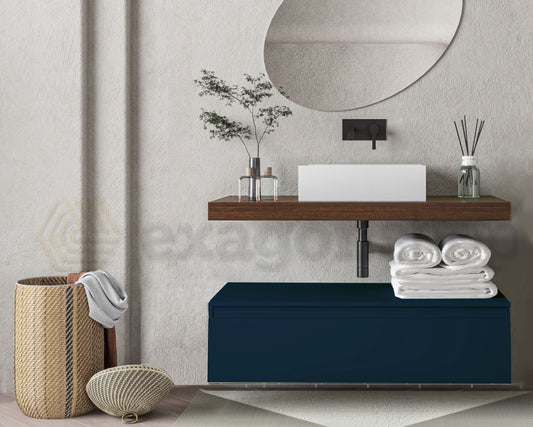 Mobile bagno tabacco blu opaco 120x50 Oasy un cassetto con top e lavabo rettangolare da appoggio