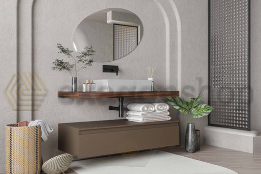 Mobile bagno tabacco tortora opaco 120x50 Oasy un cassetto con top e lavabo rettangolare da appoggio