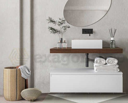 Mobile bagno tabacco bianco opaco 120x50 Oasy un cassetto con top e lavabo rettangolare da appoggio
