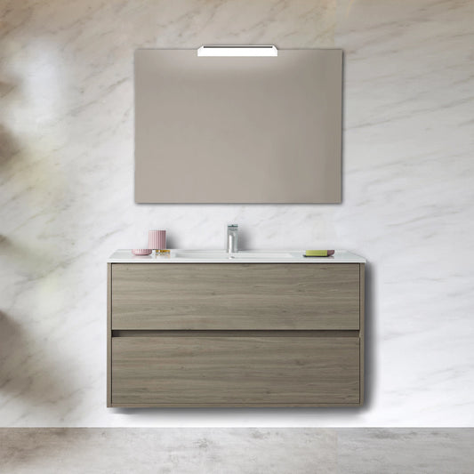 Mobile Bagno 100x45 Rovere Scuro lavabo in porcellana e specchio Rigo