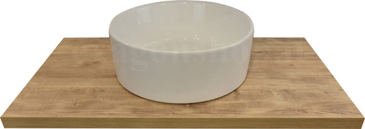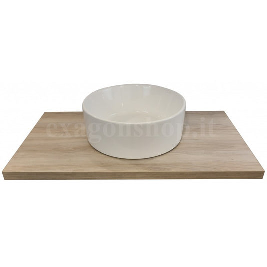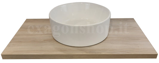 Mensola 90x50 con lavabo tondo 41 cm da appoggio in nobilitato Olmo