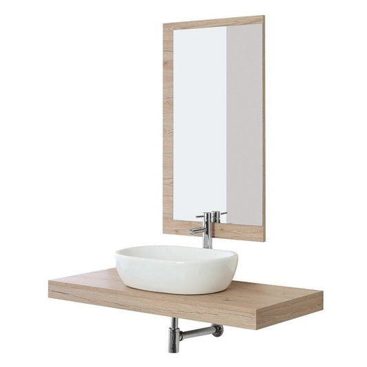 Mensola per lavabo d'appoggio 60x46 senza foro senza staffe effetto legno Rovere naturale
