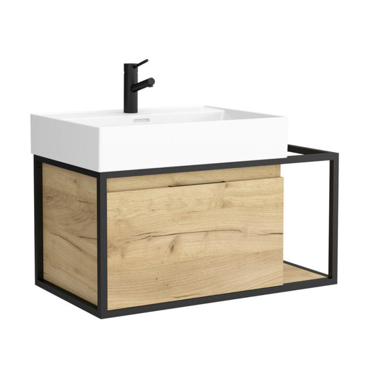 Mobile Bagno nero rovere africa 80x46 Regolo con lavabo integrato e portasciugamani