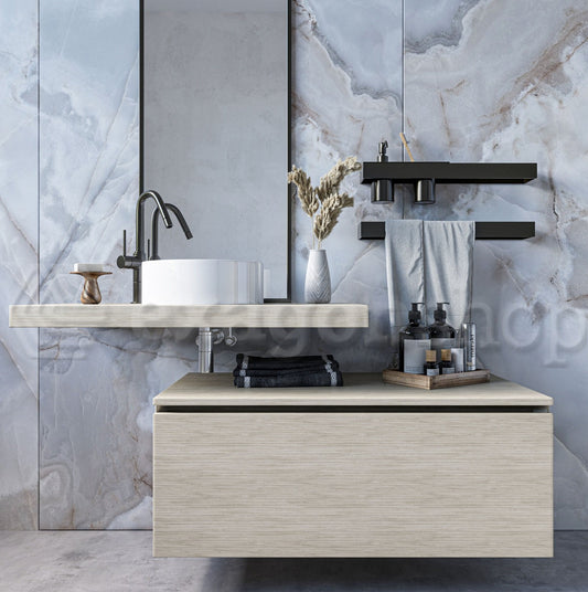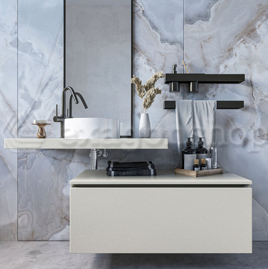 Per i mobili da bagno con lavabo e il mobile lavabo bagno, offriamo ceramica bianca di alta qualità , mineralguss e cristallo, tutti materiali igienici e durevoli. Il mobile per lavabo bagno può essere personalizzato con diverse finiture e materiali. I top possono essere in laminato, marmo, quarzo o cemento per un tocco industrial style. La cura nella selezione dei materiali assicura che il tuo mobile da bagno mantenga la sua bellezza e funzionalità nel tempo.