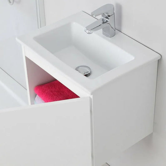 Mobile bagno 50x36 bianco laccato lavabo in ceramica e specchio Vinci