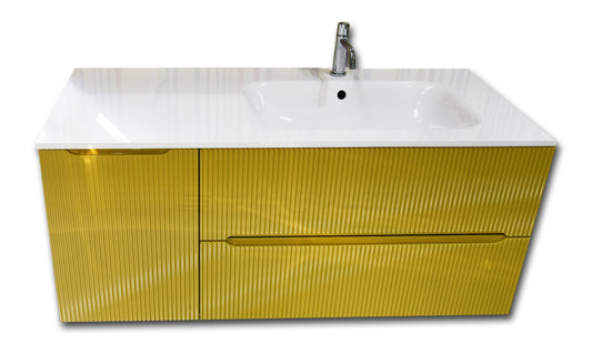 Smyle Onda Blob 115x50 Mobile bagno giallo bikini lucido con anta sinistra lavabo mineralmarmo e specchio