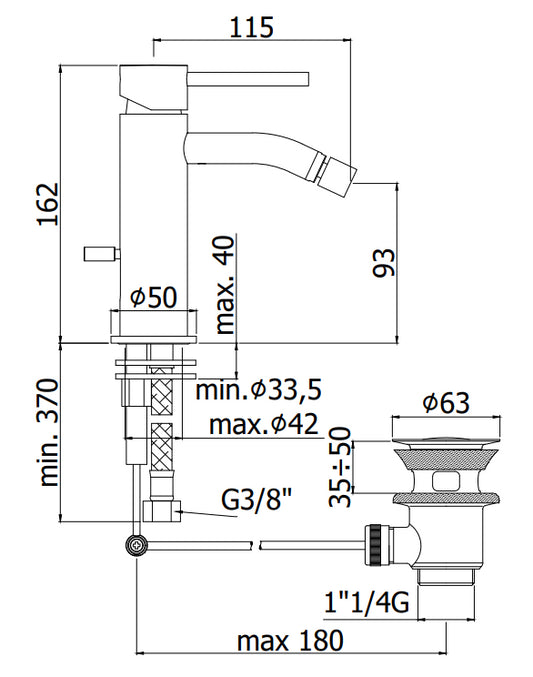 Paffoni Light Miscelatore bidet senza scarico con leva zero steel acciaio