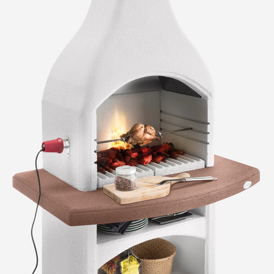 Palazzetti Andros 3 barbecue a legna o carbonella grezzo con griglia in acciaio e piano in Marmotech effetto granito rosso