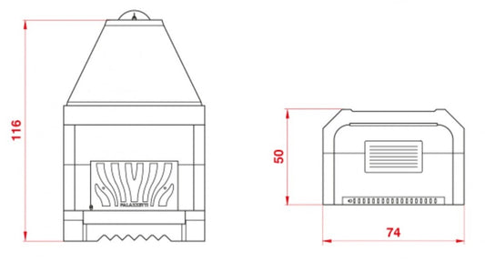 Focolare in refrattario 100x113x65 con registro fumi Palazzetti Patio 86 R