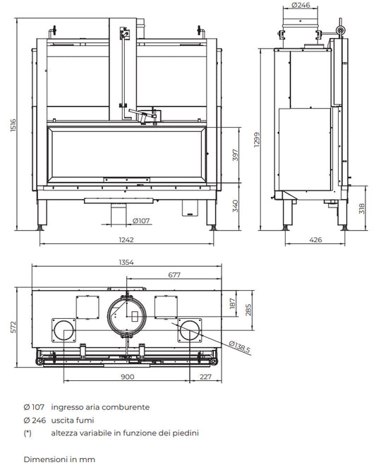 Focolare con base in ghisa e pareti in Magnofix Ecomonoblocco Mx 259 Frontale Palazzetti