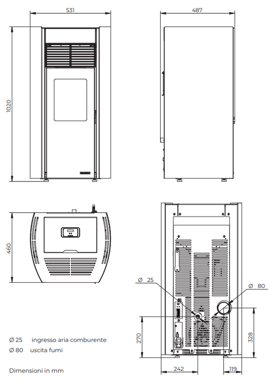 Palazzetti Milu 8 Stufa a pellet ad aria in acciaio rosso 805806920