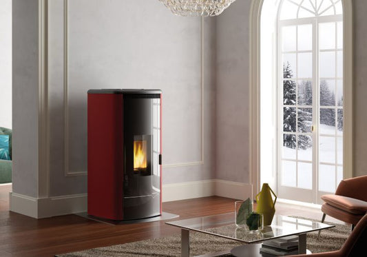 Palazzetti Ermione Idro 26 Stufa A Pellet ad acqua Con Rivestimento in Ceramica Rosso Bordeaux