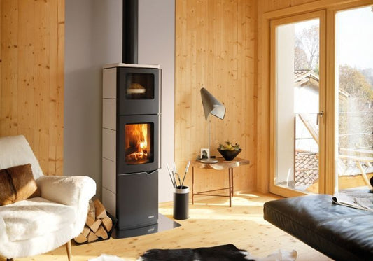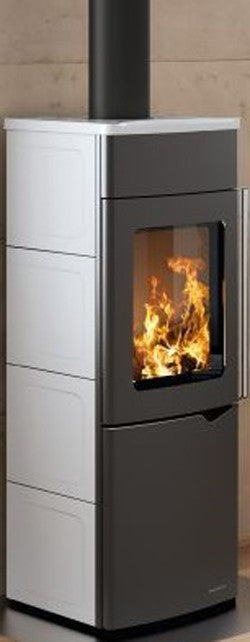 Stufa A Legna ad aria Con Accumulo 7Kw in acciaio in Ceramica Bianco Caffellatte Palazzetti Eva S 805300520