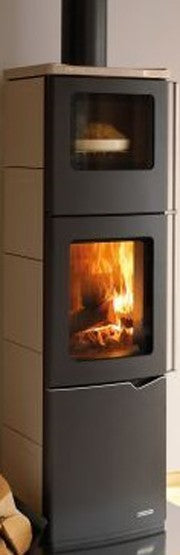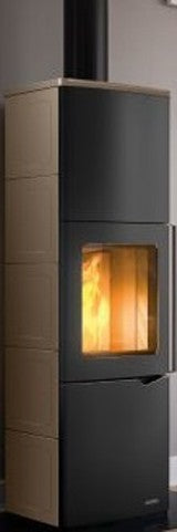 Palazzetti Eva S Stufa A Legna ad aria 8kw con porta verticale automatica in Ceramica Caffellatte