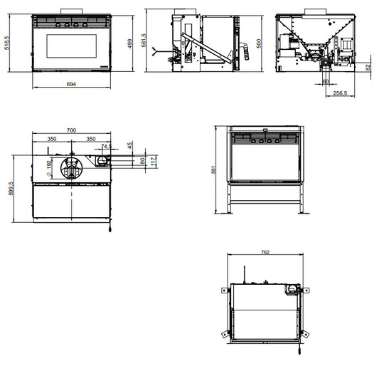 Caminetto a legna o pellet ad acqua con Caricamento A Destra Palazzetti Multifire NT Idro 22