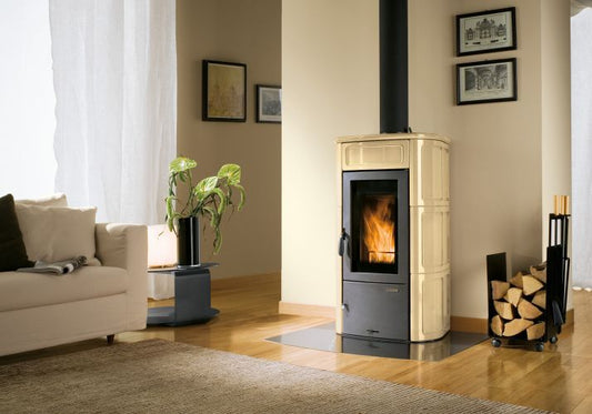 Palazzetti Ermione Idro 24 Stufa A Pellet ad acqua Con Rivestimento in Ceramica Beige