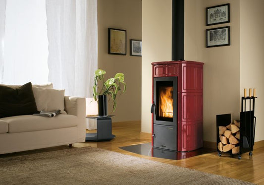 Palazzetti Elisa Stufa A Legna ad aria Con Rivestimento in ceramica Rosso Bordeaux