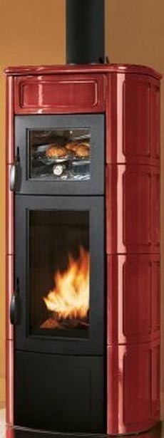Palazzetti Elisa Stufa A Legna con Forno Con Rivestimento in ceramica Rosso Bordeaux