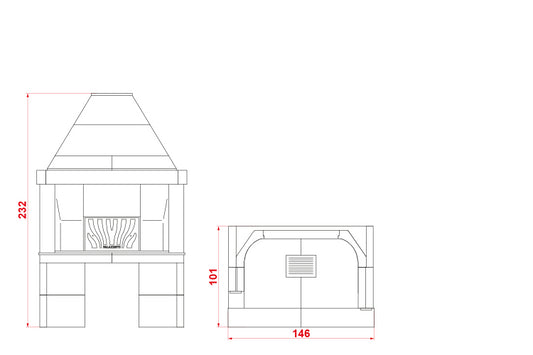 Camino da esterno a legna aperto con modulo grill aria Palazzetti Linosa 802200310