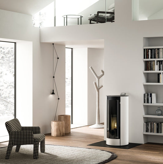 Palazzetti Giorgia 9 Pro 2 Ecofire Stufa A Pellet Ad Aria 9kw Con Top In Ghisa E Rivestimento Stondato In Acciaio Bianco