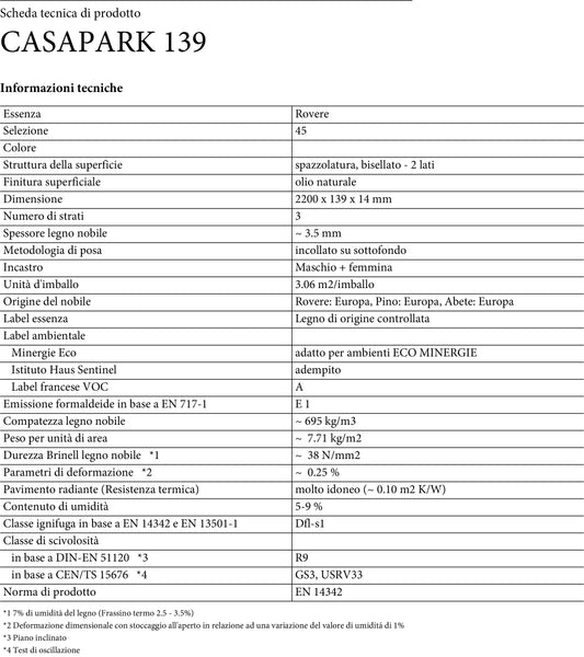 Parquet 14x139x2200 mm in legno rovere 15 vivace verniciato opaco Casapark 139 Rovere Bauwerk