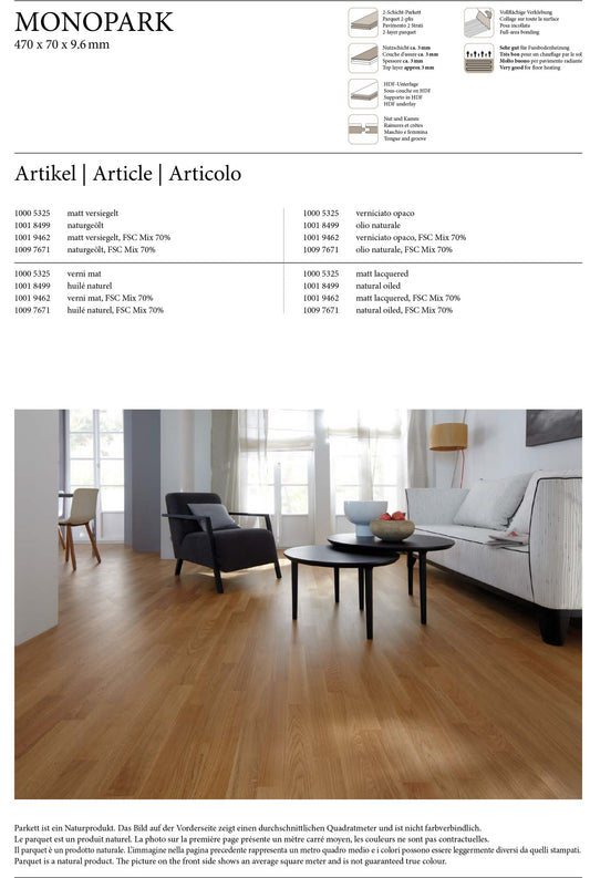 Bauwerk Parquet Monopark 15 Olio Naturale 470x70x9.6 Mm Rovere