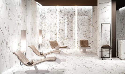 Pavimento rivestimento 60x120 effetto marmo rettificato 7 mm in gres fine porcellanato white beauty levigato Rhapsody 0117432 Naxos