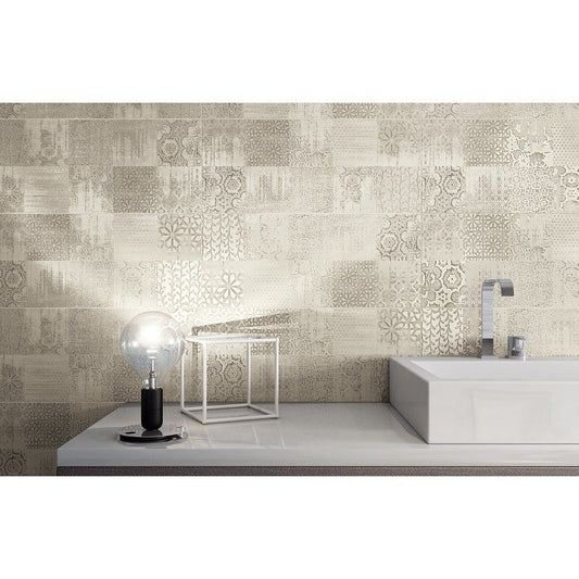 Rivestimento 26x60,5 decoro in pasta bianca fascia tebriz taupe Start 0081108 Naxos