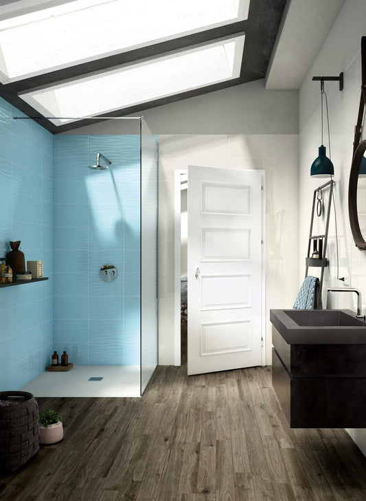 Pavimento rivestimento 30x120 in gres porcellanato rettificato 8,5mm R9 blu Ragno Decora