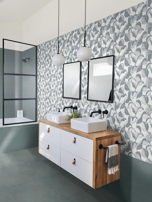 Ragno Vida rivestimento in pasta bianca 30x90 sp. 10 mm Decoro Edera Touch azzurro
