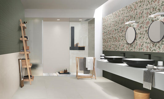 Ragno Vida rivestimento in pasta bianca 30x90 sp. 10 mm Decoro Edera Touch verde