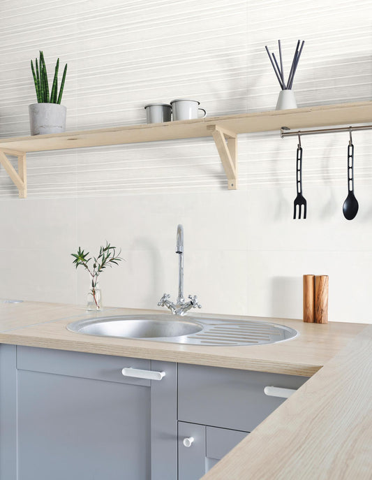 Rivestimento 25x76 Effetto Resina In Pasta Bianca Struttura 3d Rigo avorio Ceramiche Ragno Now 00R9MZ06