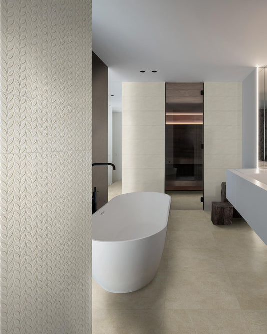 Ragno Vida rivestimento in pasta bianca 30x90 sp. 10 mm strutturato 3d foglia rettificato beige