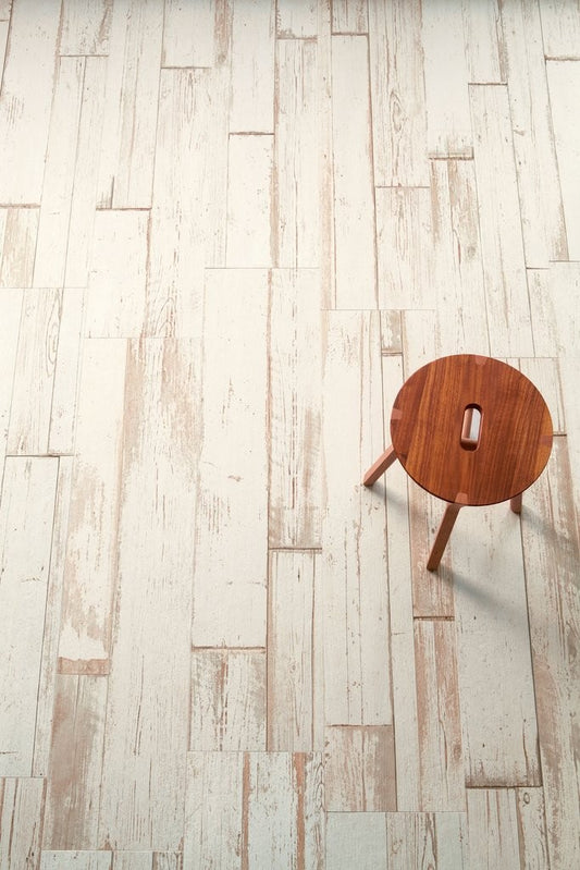 Pavimento rivestimento 15x120 Effetto Legno Verniciato Invecchiato In Gres White Ceramica Sant Agostino Blendart CSABLAWH15