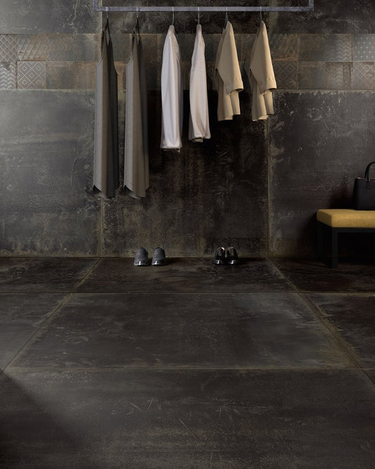 Pavimento Rivestimento 60x120 Cm Effetto Metallo In Gres Porcellanato Black Ceramica Sant Agostino Oxidart CSAOXBLA12