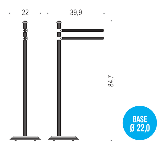 Piantana porta salviette a due posizioni con base ultrapiatta in acciaio nero opaco