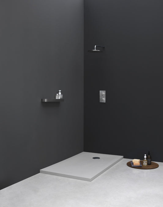 La sua tonalità neutra lo rende facilmente abbinabile a rivestimenti di ogni colore e texture, dalle piastrelle in ceramica effetto marmo alle resine colorate. Per completare il tuo spazio doccia, scegli una cabina doccia che si abbini al tuo stile: in vetro trasparente per un look minimale, con profili neri per un tocco industriale, o satinata per maggiore privacy.