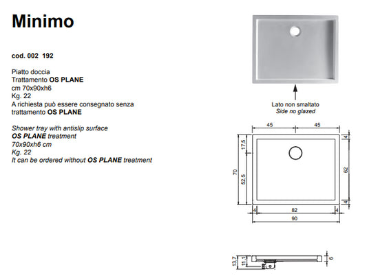 Minimo Piatto Doccia Antiscivolo 70x90 Bianco Lucido