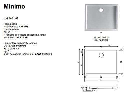 Minimo Piatto Doccia Antiscivolo 80x100 BIANCO LUCIDO
