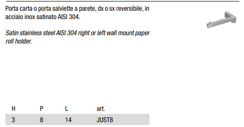 Antonio Lupi Just8 Porta Carta Inox A Parete Sinistro