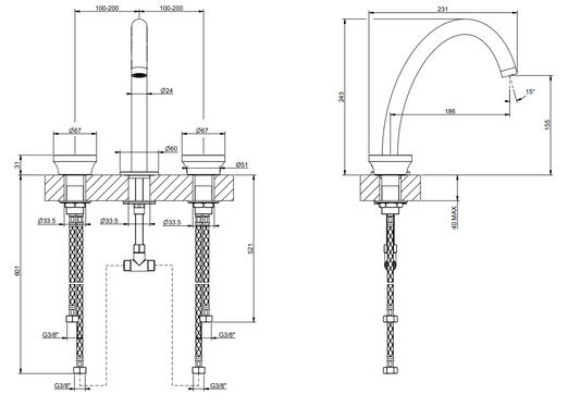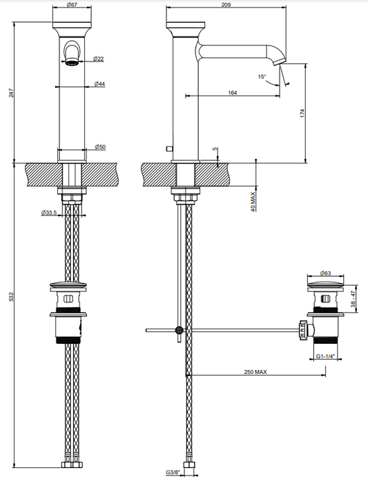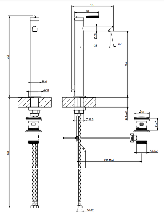 Miscelatore Lavabo alto bocca corta con scarico con flessibili di collegamento 63503 Gessi
