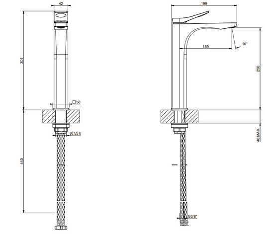 Rubinetto lavabo alto monocomando in ottone con flessibili cromo Hidden