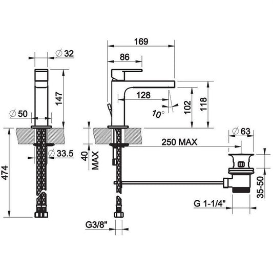 Miscelatore lavabo alto con scarico click clack cromo 73371 Jabil 35
