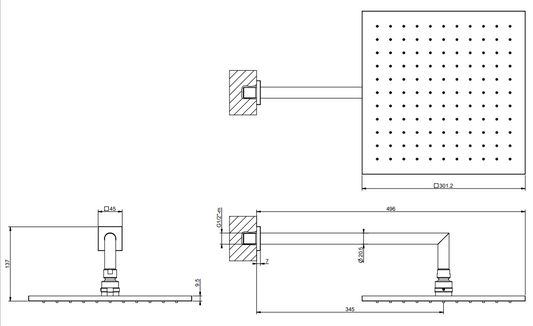 Gessi 47364 Soffione 30x30 quadro a parete orientabile cromo