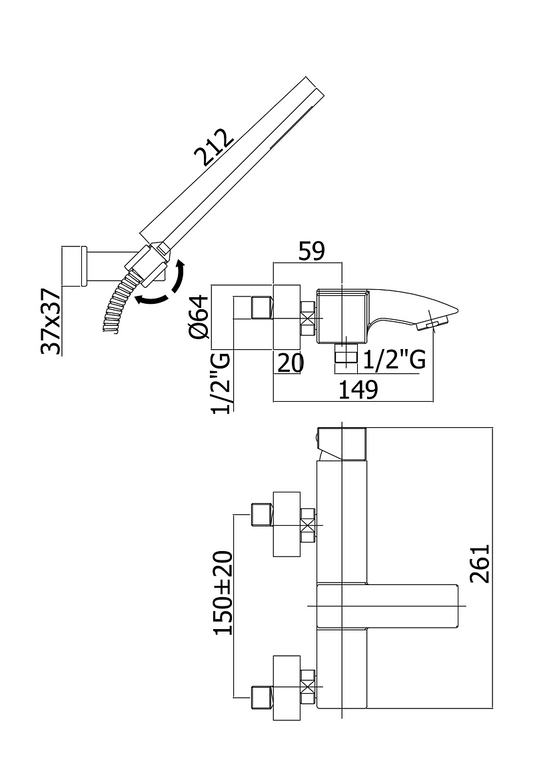 Miscelatore doccia esterno a muro cromo 73212 Jabil