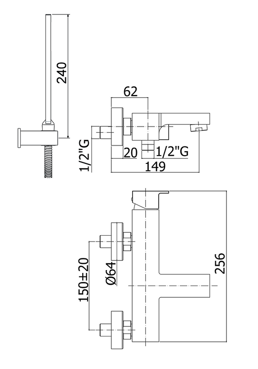 Miscelatore esterno vasca con doccetta supporto a muro snodato in abs e flessibile cromo lec023 level paffoni