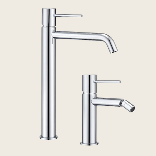 Coppia rubinetti lavabo alto e bidet senza scarico in ottone cromo Melin