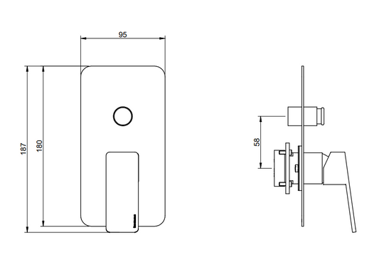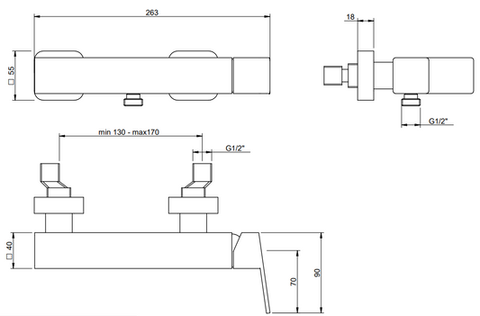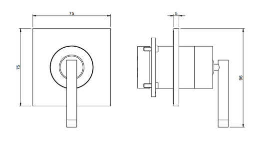 Treemme Arche miscelatore monocomando vasca doccia a muro con leva stick senza parte incasso cromo