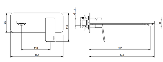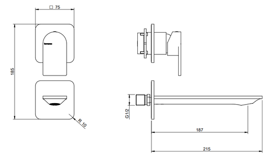 Treemme Pa36 Miscelatore lavabo a muro monocomando senza parte incasso cromo
